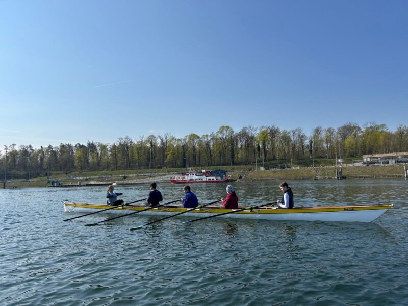 Der Kurs startete am Samstagmorgen um 8:00 Uhr. Nach einer kurzen Begrüssung folgte die erste Einführung auf dem Ergometer, wo die grundlegenden Bewegungsabläufe erklärt und geübt wurden. Anschliessend ging es bereits aufs Wasser: In C-Gigs konnten die Teilnehmenden ihre ersten Ruderschläge auf dem Wasser machen.